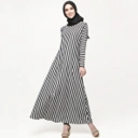 Gamis salur hitam putih yang cocok dipakai di segala occasion. Bahannya adem dan stretchable bisa untuk semua ukuran! Material: Kaos Misty (Khimar bahan Jersey Korea HQ), Bahan Stretchable (melar) Size : Allsize Fit to S - XL (Stretch sampai XXL) Ld 110cm (Stretch sampai 125cm) PB 140cm Colour: Black and White Ukuran pakaian normal, fit-to S-XL Panjang lengan x Lingkar Dada x Lingkar Pinggang x Lingkar Pinggul x Lingkar bawah x Panjang - One size (60cm x 110cm x 120cm x 130cm x 250cm x 145cm)
